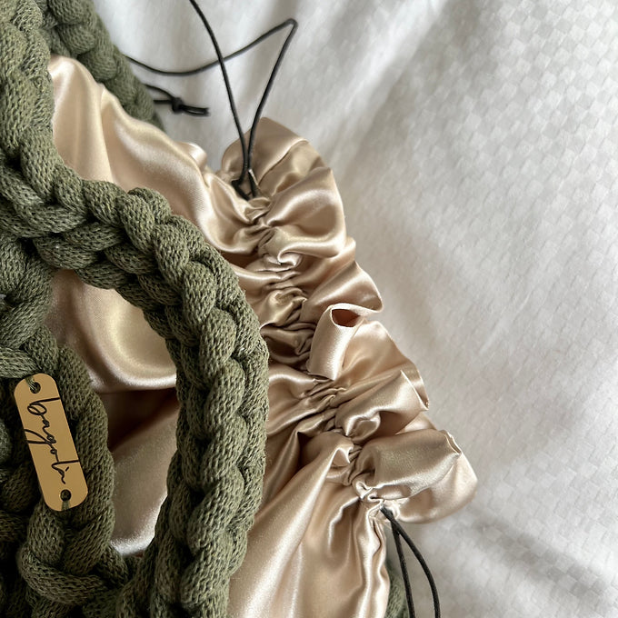 Theresa Tote Bag is your perfect companion for any occasion. Handcrafted from organic cotton and satin, this spacious bag is ideal for beach trips, city adventures, and everyday use. Its medium to large capacity will accommodate all your essentials, making it a versatile and stylish must-have in your wardrobe.